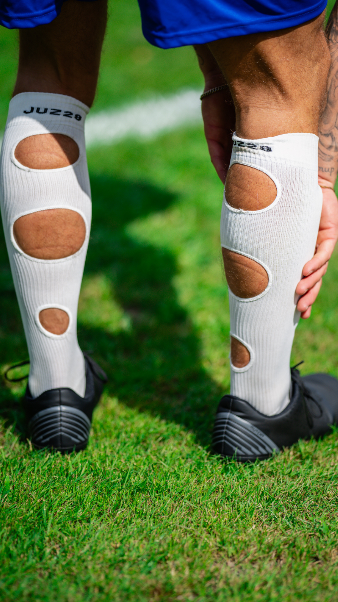 Crafted from premium fabrics built to endure, JUZ28 stands for strength in every thread. Designed to take hits and not show them, these socks keep their form, feel, and attitude long after the game is done.
